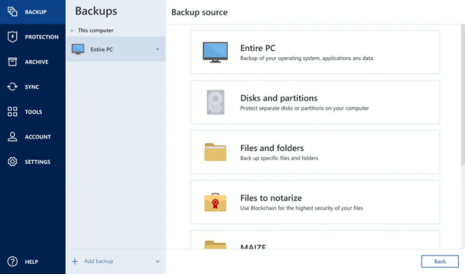 Disk and partition backup |